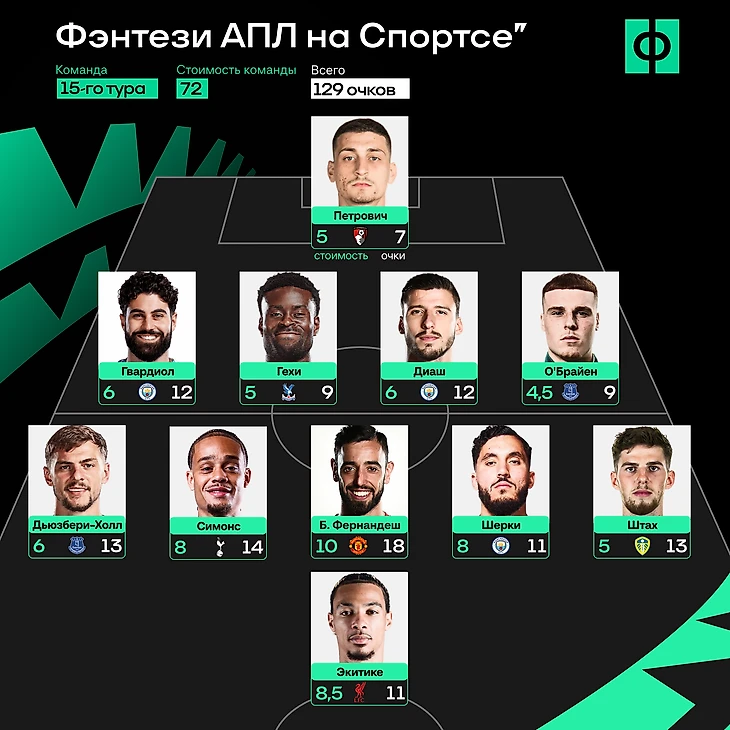 Это самые эффективные игроки 15-го тура в Фэнтези АПЛ на Спортсе’‘.