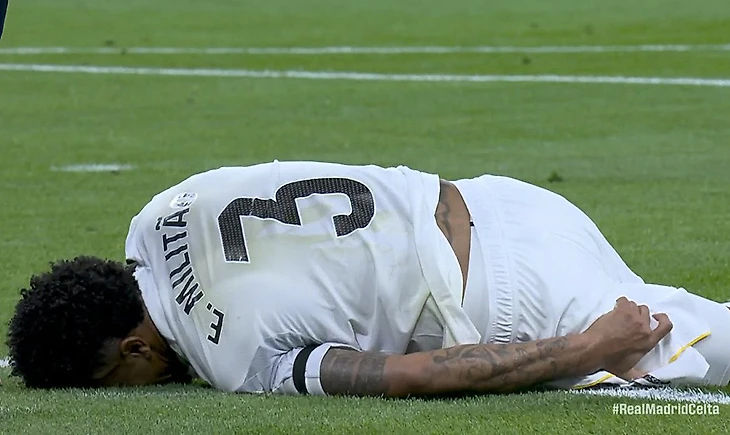 К несчастью, главный момент первого тайма – травма Эдера Милитао. Он повредил бедро в погоне за форвардом Пабло Дураном. Упал на газон сразу, продолжить игру не смог. А ведь у «Реала» в защите и так не могут играть ни Дани Карвахаль, ни Трент – так что справа приходится ставить Рауля Асенсио.
