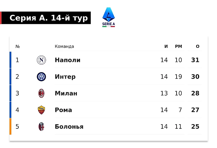 «Наполи» лидирует в Серии А. «Интер» очень близко, а вот «Юве» только седьмой. «Милан» может сравняться по очкам, если в понедельник выиграет у «Торино».