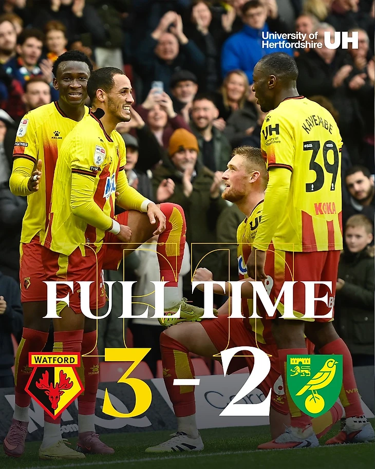 Подопечные Филлипа Клемана, выбрали отличный стартовый план задавив «Уотфорд» стандартами и в итоге добившись своего: переводы с фланга на фланг, подача от Швартау и удар форварда, Сарджента в «противоход». После этого «канарейки» совершают главную ошибку - они отдают игру и садятся в оборону. Разумеется «шершни» тут же этим пользуются и давят флангом одновременно левым флангом, а именно треугольником Маамма-Чакветадзе-Бола и правым где был один Нкагия. По итогу инициатива перешла к «Уотфорду» и даже супер игра вратаря «канареек» - Ковачевича не спасла - Кьеррумгор сравнял за 10 минут до перерыва.