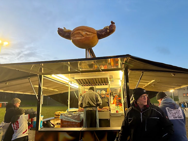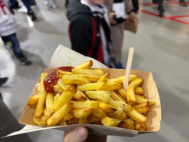 Из еды в меню привычные в Германии сосиски и хот-доги, а также картошка-фри.