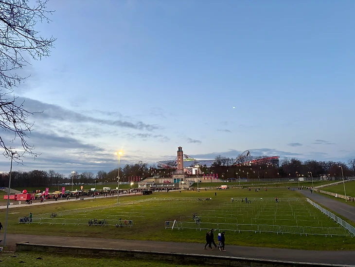 Стадион оказался в шаговой доступности от центра города и к территории стадиона я подошел аж за 2,5 часа до игры. Выглядит удивительно, но велопарковка у стадиона едва ли не больше, чем автомобильная.