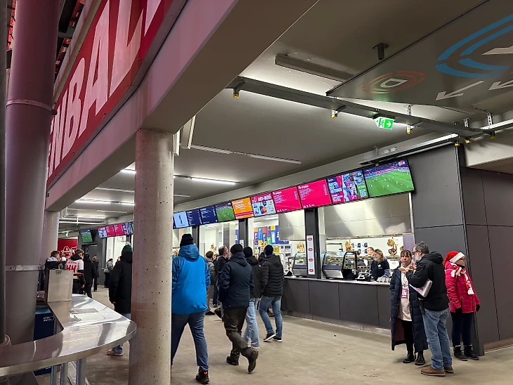 На трибунах сразу же бросается в глаза, что проходы между рядами непривычно широкие, а спинки кресел высокие и комфортные. При строительстве и проектировании явно не экономили.