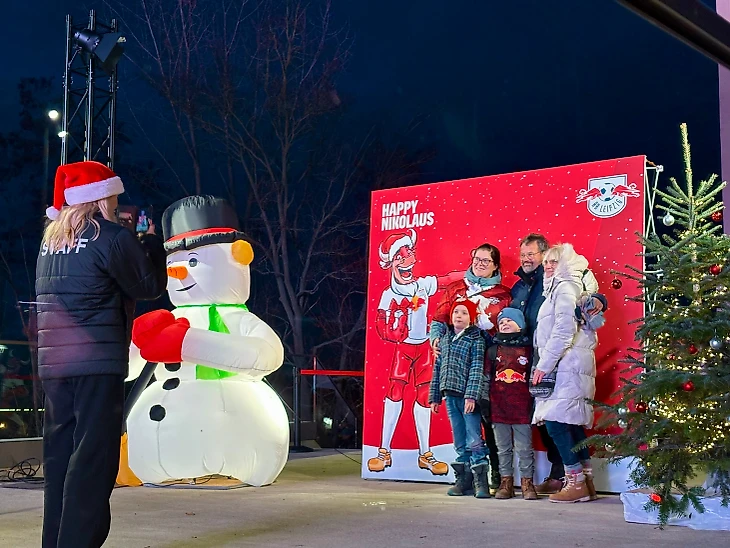 В связи с праздником на матче была организована милая фотозона. Сразу бросилось в глаза, что многие приходят на футбол целыми семьями. Например, снизу на фото семья из 5 человек.
