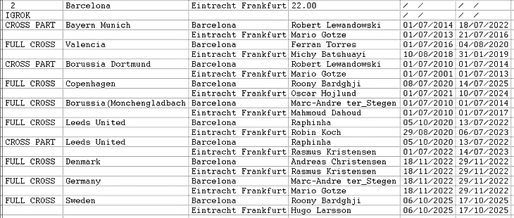 3.Соперники играли за один и тот же клуб (возможно в разное время- NO CROSS)