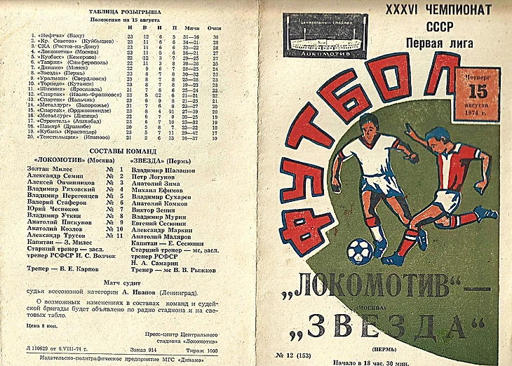 Локомотив - Звезда. 15 августа 1974 года / Первая лига СССР