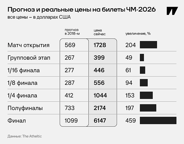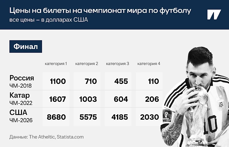 The Athletic пишет, что вероятные цены даже намеренно завысили – хотели заверить в выгоде проведения чемпионата именно у них. Да, итоговые цены всегда устанавливает ФИФА и страны-хозяева практически никак не влияют на этот процесс. Однако даже завышенный прогноз сейчас выглядят еще скромно.