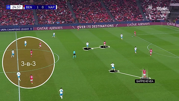 «Бенфика» абсолютно по делу обыграла «Наполи» – полностью нейтрализовали атаку итальянцев и создавали угрозу на пространстве (как раз детали этой стадии затрагиваются в вопросе).