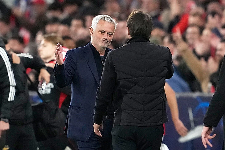Жозе Моуринью сначала приложил Антонио Конте: «Говорит, что «Бенфика» просто была свежее физически? Что ж, звучит как отговорка». А еще попался с сумкой от Скотта Мактоминея и даже похвалил журналиста за отличный вопрос.