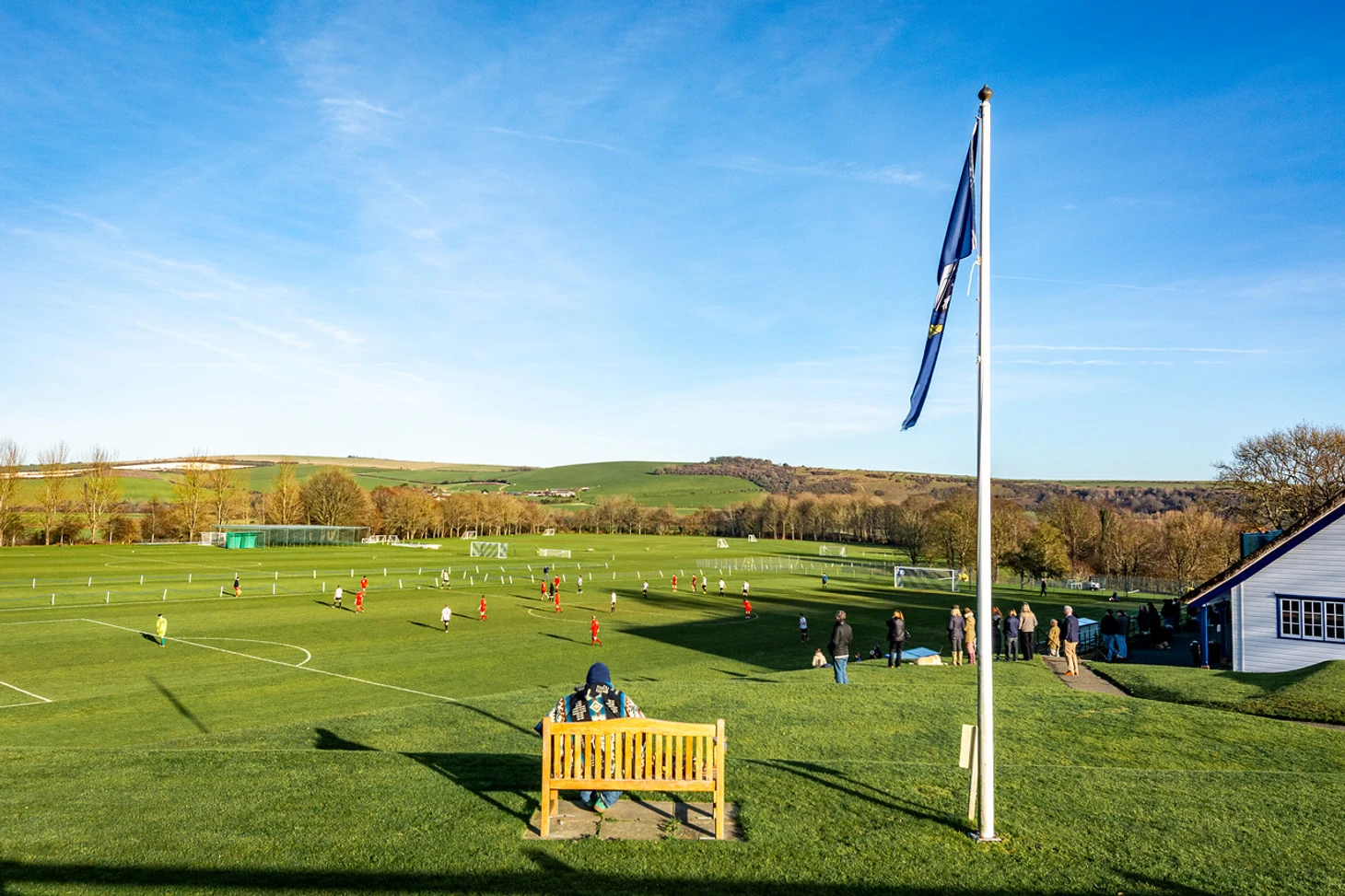 Открывается вид на городок Шорхэм-бай-Си — местный Хогсмид. Правда, там играет не «Хогсмид Таун», а ФК «Шорхэм» из девятого дивизиона Англии. «Шорхэм» существует с 1892 года и в сезоне-2022/23 провел идеальный беспроигрышный сезон. ФК «Лансинг», еще один сосед, тоже из девятого эшелона, но из окон колледжа его не видно. «Лансеры», увы, не могут похвастаться большой историей и какими-либо достижениями.