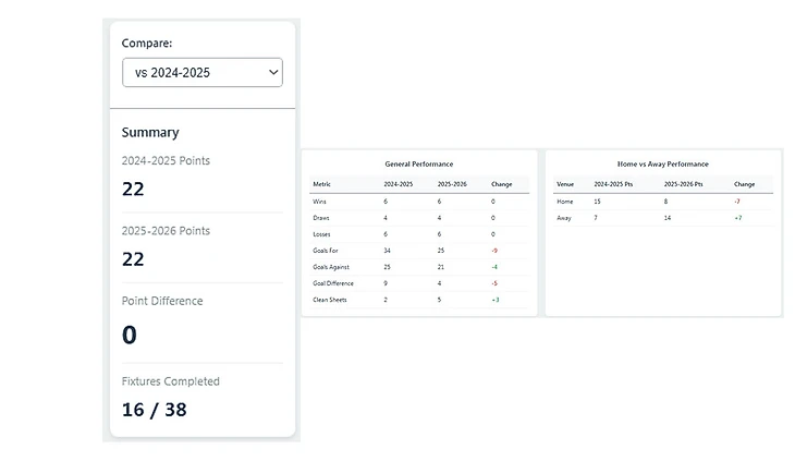 После 16 туров и в сезоне-2024/25, и в сезоне-2025/26 у «шпор» было одинаковое количество очков – по 22. Разница есть в деталях, а именно при Постекоглу клуб забил на девять голов больше, а пропустил на четыре. Кроме этого, при Франке команда стала больше набирать очков на выезде (14 против 7), чем дома (15 против 8).