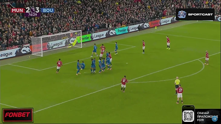 А дальше началось самое интересное… Сначала Бруну Фернандеш выпросил у Саймона Купера опаснейший штрафной. Именно выпросил, потому что я не считаю, что за то попадание мяча в рукав Адама Смита следовало назначать штрафной. Так или иначе, капитан «МЮ» ответил Тавернье своим бэнгером — 3:3.