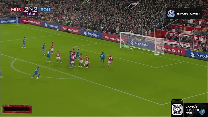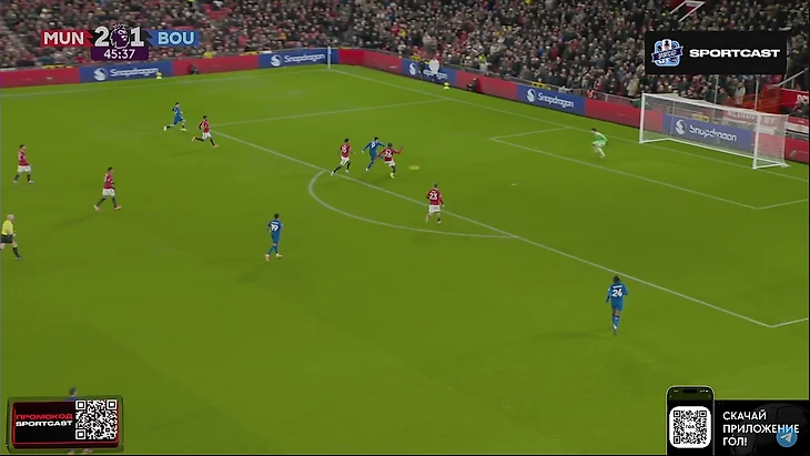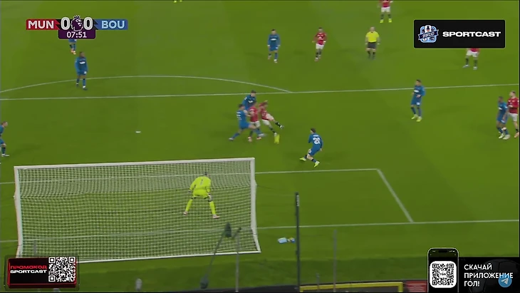 В первой половине встречи «красные дьяволы» с огромным энтузиазмом взялись за дело. Я бы назвал первые полчаса в исполнении команды Аморима лучшими при португальце (по крайней мере, среди матчей, которые смотрел я). В первые минуты хозяева обрушили просто шквал атак на ворота Петровича. Какое-то время сербский вратарь справлялся, как после этого удара Мэйсона Маунта.