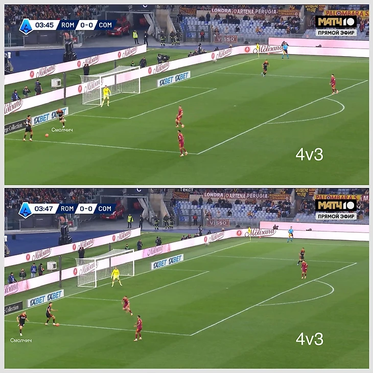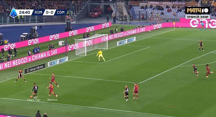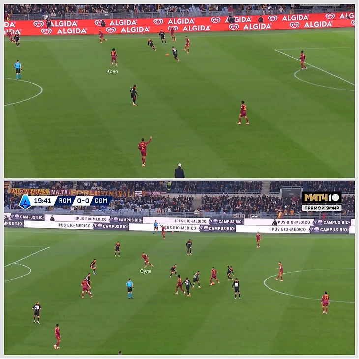 Преимущество джаллоросси подтверждают не только метрики (PPDA 6,18 против 12,28 у «Комо»), но и банально визуальное ощущение от тотального физического доминирования. Игроки «Ромы» будто пересели на скутеры «Vespa», в моменты прессинг-действий.