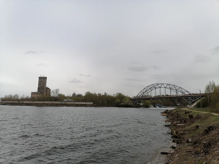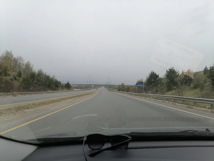 Пора двигать к следующей точке, а именно стадиону «Химик». Необходимо пересечь Волгу по мосту, виды открываются шикарнейшие. К сожалению, из машины красиво заснять не получилось.