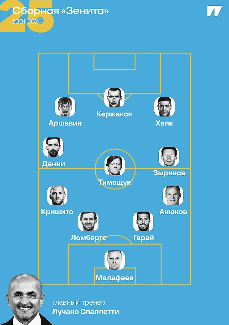 Символическая сборная «Зенита» за 25 лет. Халк, Аршавин и Кержаков в атаке