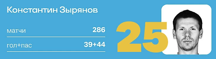 Зырянов забил в первом же матче в старте и довольно быстро показал, что может не только стабильно играть на уровне одного из претендентов на золото РПЛ, но и быть одним из лучших. При Адвокате эффективно врывался в штрафную вторым темпом и находил тонкие решения с мячом, при Спаллетти соединял функции Денисова и Широкова: оставался полезным и при обороне, и при атаке.