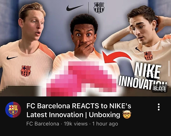 На официальном ютуб-канале «Барселоны» появился ролик с загадочным названием: «Барселона» реагирует на последнюю инновацию Nike. Распаковка». Обложка еще более интригующая.