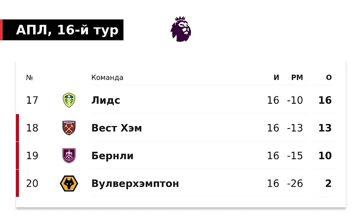 У «Вулверхэмптона» сейчас десять поражений подряд. До Рождества примут «Брентфорд», набравший всего очко за три прошлых матча. Если и эта игра не поможет, повторят антирекорд «Шеффилд Юнайтед» из 2020-го – с 17 играми без побед на старте сезона АПЛ.