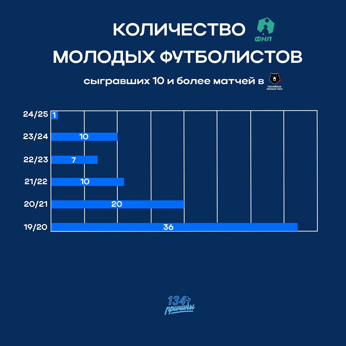 (*после сезона 24/25 многие молодые игроки, такие как Юрий Коледин (ФК «Пари НН»), ещё не успели отыграть свои 10 матчей, так что подождем.)