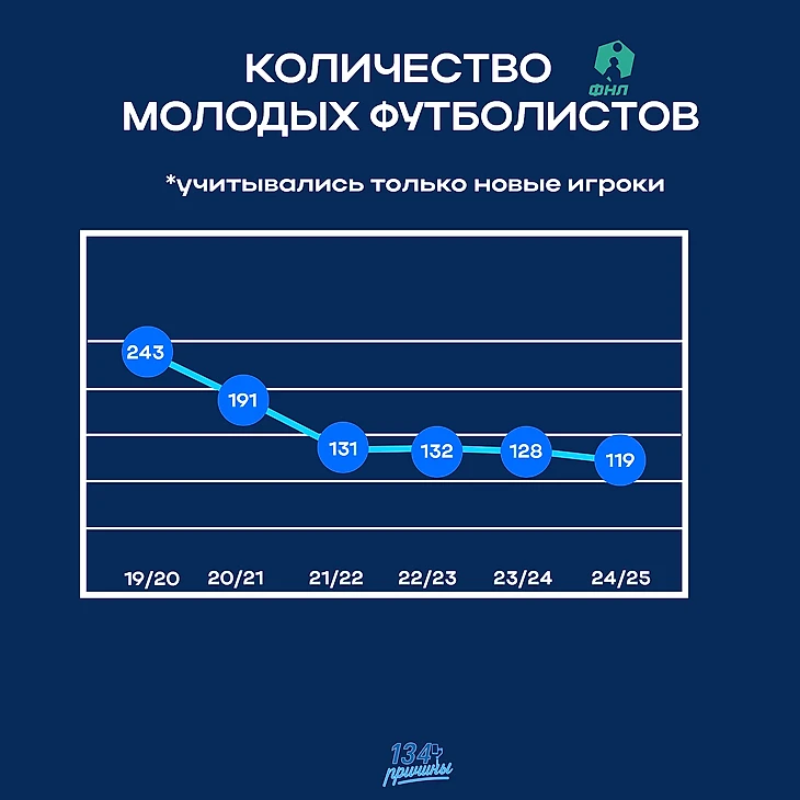 (*После сезона 2024/25 многие молодые игроки, как, например, Юрий Коледин (ФК «Пари НН»), еще не успели отыграть свои 10 матчей, так что подождем.)