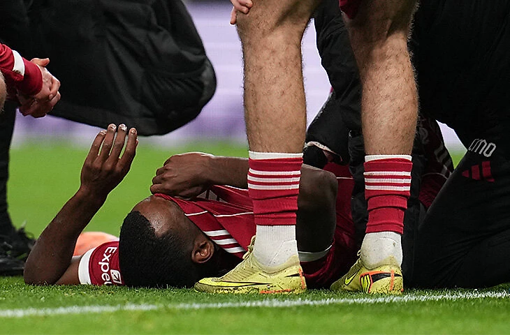 И вот Дэвид Орнштейн из The Athletic (уровень надежности = официальный анонс клуба) выкатил информацию: еще не провели детальный МРТ, но у форварда подозрение на перелом ноги. Он также пишет, что восстановление займет несколько месяцев. «Ливерпуль» настроен пессимистично, но пока нет точного диагноза.