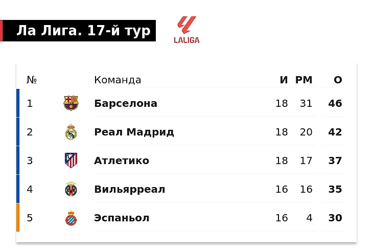 «Барселона» сохранила отрыв от ближайшего преследователя, мадридского «Реала», в 4 очка и провела прекрасную предрождественскую серию, трижды победив со счётом 2:0. «Вильярреал» же потерял третью строчку в таблице, отстал на 11 очков (правда, у валенсийцев два матча в запасе), и потерпел третье поражение кряду.
