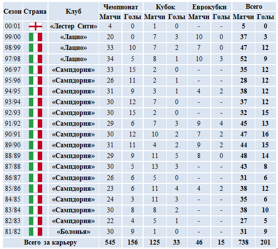 Сам Манчини сменил "россоблу" на "Сампдорию", в которой провел следующие 15 сезонов.
