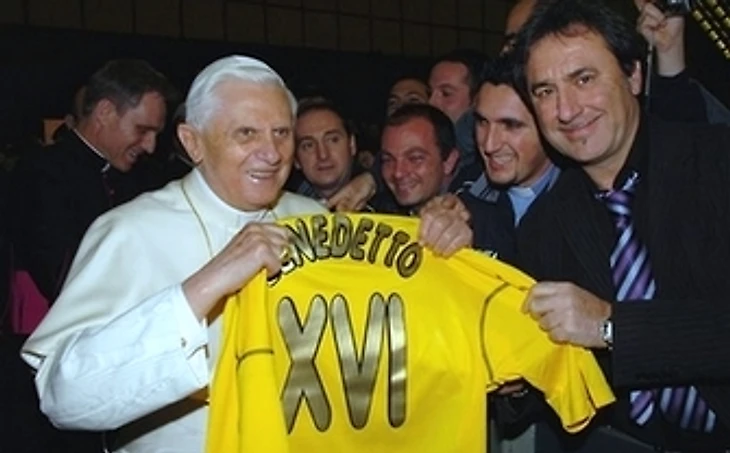 Признаюсь честно: когда я впервые услышал о том, что Ватикан собирается создать футбольную команду для участия в чемпионате Италии, то не поверил. Хотя планы кардинала Тарчисио Бертоне казались заманчивыми - наконец-то в серии А появилась бы команда, которую нельзя было бы обвинить в подкупе судей, игре на подпольном тотализаторе или махинациях с трансферами. Ватикан безгрешен! Тем более, что вскоре мне на глаза попалась фотография Папы Римского Бенедикта XVI с именной футболкой.