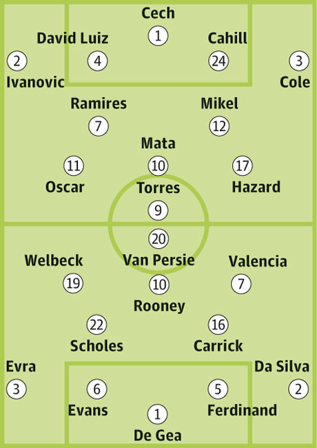 Кстати, Робин большой любитель забивать в ворота «Челси», что тоже не стоит забывать. Ну а Руни опасен всегда и против любого соперника. В полузащите стоит ждать смесь опыта и молодости. Что-то вроде Скоулз – Клеверли, но возможны и варианты. С учётом травмы Кагавы наверняка появится Валенсия, что добавит скорости флангам.