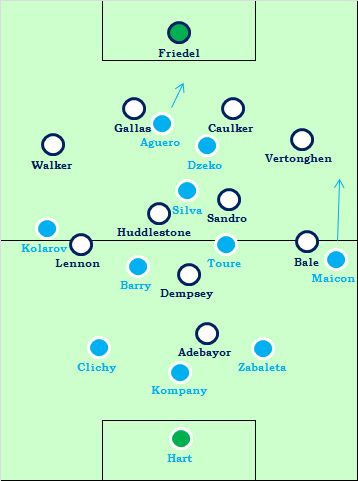 Андре Виллаш-Боаш решил использовать Эмануэля Адебайора в качестве единственного нападающего, вместо Джермейна Дефо. Место в воротах занял Брэд Фридель, в очередной раз оставив Уго Льориса на скамейке запасных.