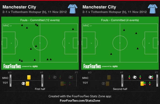Хотя , безусловно, Манчини рисковал, учитывая то, как в последнее время играл Майкон, особенно опасно было оставлять его против сверхскоростного Бэйла, однако за оставшееся время, не было ни одного момента, где бы Майкон смог продемонстрировать свои скоростные данные.
