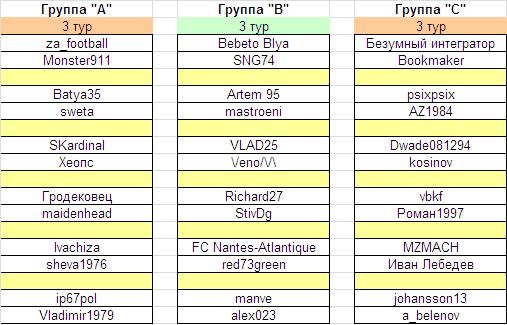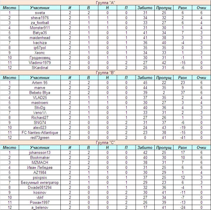 Турнирное положение в группах после сыгранного тура таково: