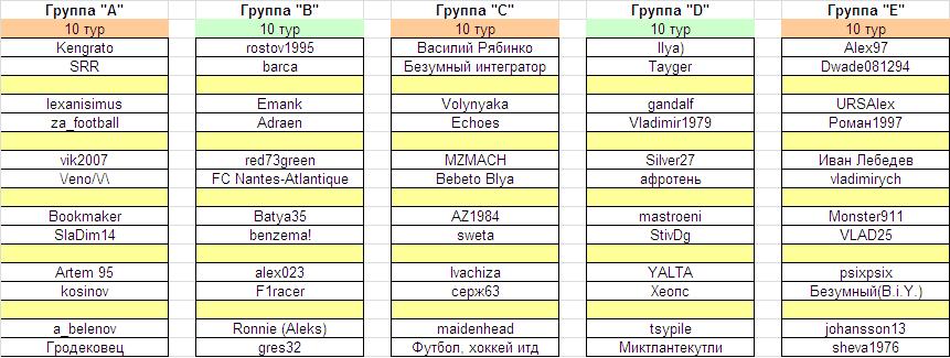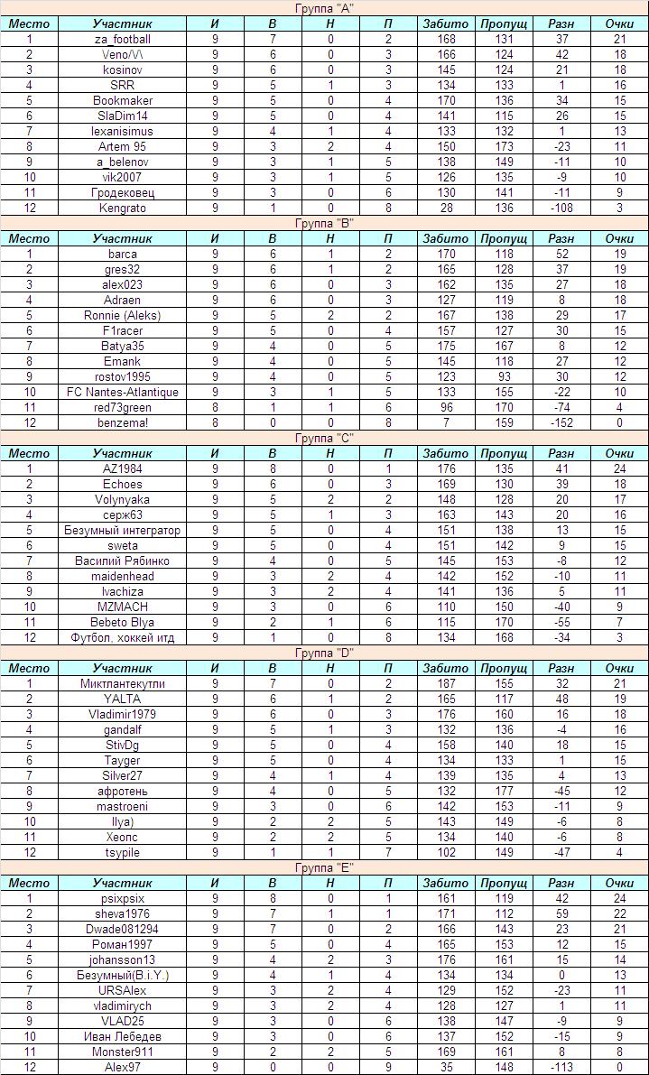 Турнирное положение в группах после сыгранного тура: