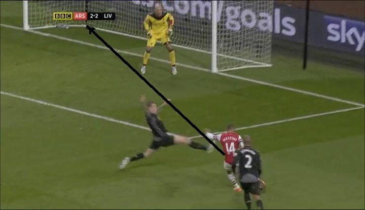 Ну а дальше Глен Джонсон проспал Тео Уолкотта, что вынудило Джейми Каррагера оставить в одиночестве Оливье Жиру и броситься накрывать Тео.