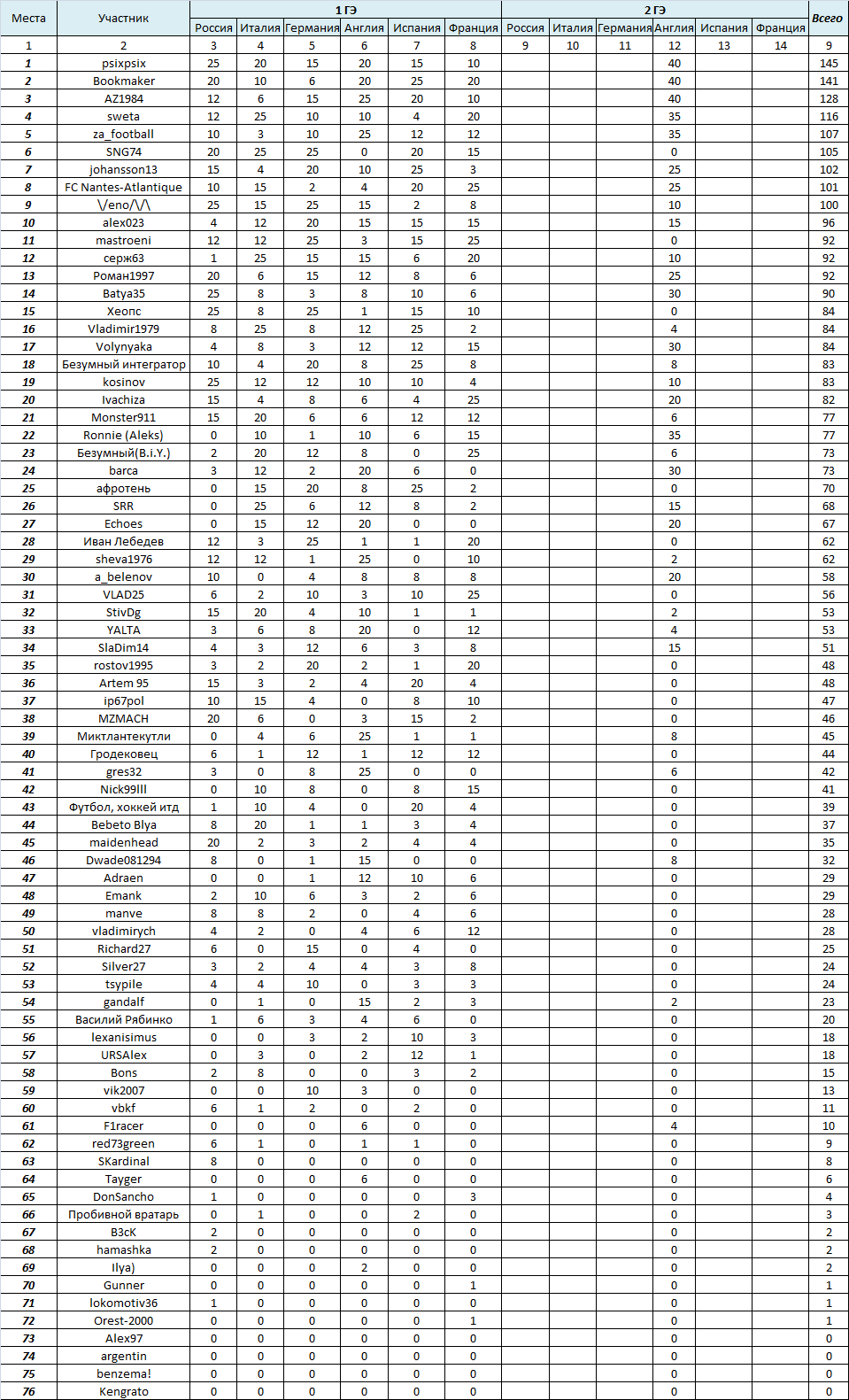 Ну и напоследок - то, как выглядит Общий зачет с учетом завершившегося 2-го ГЭ: