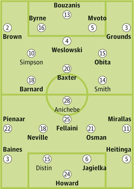 "Эвертон": Ховард - Бейнс, Хейтинга, Джагелка, Невилл - Пиенар, Осман, Гибсон, Феллайни, Миральяс (Нейсмит 70') - Аничебе (Елавич 56').