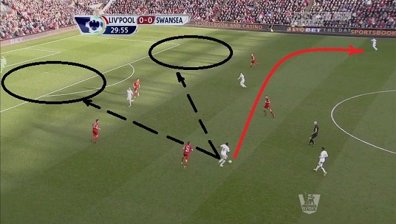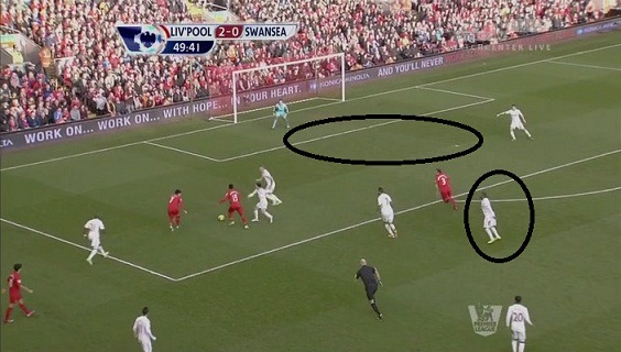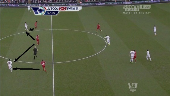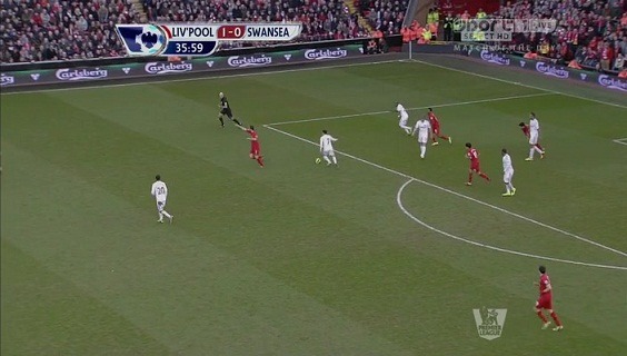 Футболисты Ливерпуля "скушали" центр поля, не оставив атакующему трио "Лебедей" никаких шансов. У полузащитников Суонси зачастую просто не было возможности отыграться с кем-либо в центре, поэтому оставалось уповать лишь на дальние забросы, после чего, в 90 процентах случаев, они теряли мяч.