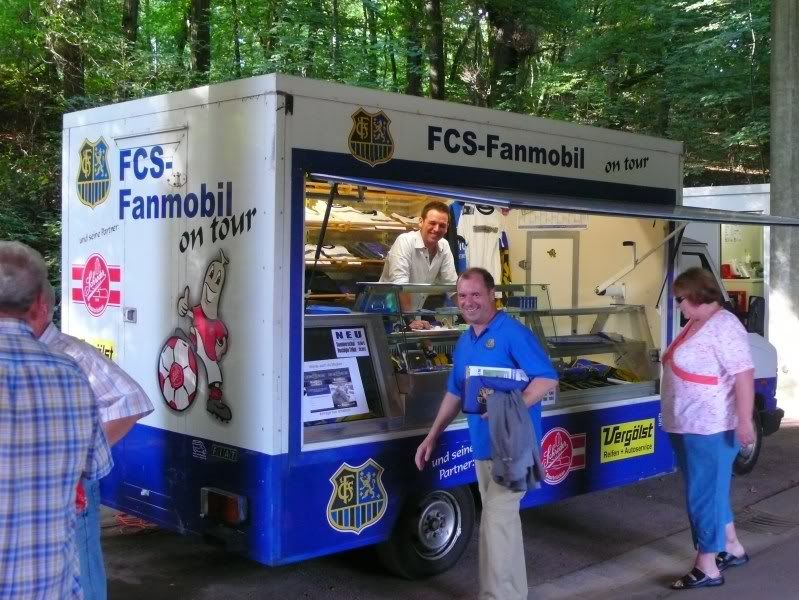 Так что стадион, разумеется, не мешает жителям Саарбрюкена (население около 170 тысяч) любить и уважать свою команду, которая в городе пользуется большой популярностью. Болельщики очень преданны клубу, их слоган гласит “Liebe kennt keine Liga“, что на русский язык переводится как “Любовь не знает дивизионов“. Очень точное и острое выражение, особенно учитывая все при- и злоключения команды! С этим слоганом продаются всевозможные сувениры. Майки, толстовки, шарфы, кружки, значки, бейсболки пользуются большим спросом у жителей столицы Саарланда, особенно у молодежи. Небольшой клубный магазин находится в городском центральном торговом центре, но также поддержать команду посредством евро можно около стадиона через традиционные немецкие “фанмобили“.