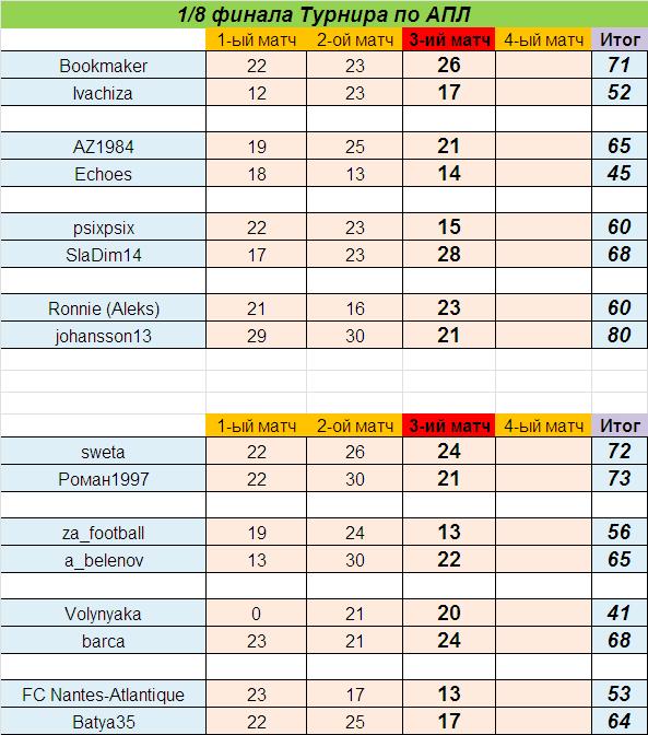 В рамках прошедшего 28-го тура Чемпионата Английской Футбольной Премьер-Лиги состоялись 3-и матчи 1/8 финала Турнира по АПЛ, которые завершились следующим образом: