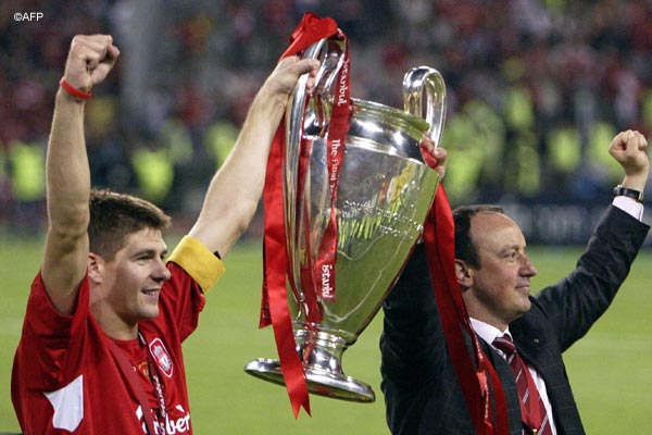 Внизу: Главные творители победы: Стивен Джеррард и Рафа Бенитес.