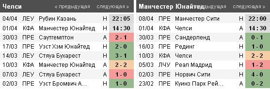 Это на самом деле так. Не сочтите за иронию или сарказм. Да, осадок после того матча за Кубок Лиги остался, но стоит смотреть вперёд. Итак, подводя итог вышесказанному. У «Челси», безусловно, есть преимущество, и заключается оно в своём поле. Мотивации у команды Сэра Алекса будет не меньше, состав посвежее, ну и тяжёлые матчи с «Рубином» не ждут впереди. Однако, «Челси» сделают всё, чтобы сбросить «Юнайтед» на этой стадии турнира, после чего обойти «Сити», и уступить «Миллуол». Классика жанра, господа.