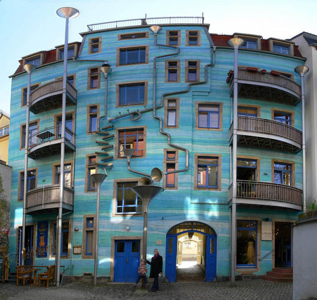 Вообще, подобных художественных домов в северном районе Дрездена «Äußere Neustadt» («Внешний новый город») немало, ведь именно там располагается пассаж «Двор искусств», созданный группой дрезденских художников и объединяющий пять дворов с необычными фасадами домов, богемными кафе и художественными выставками.