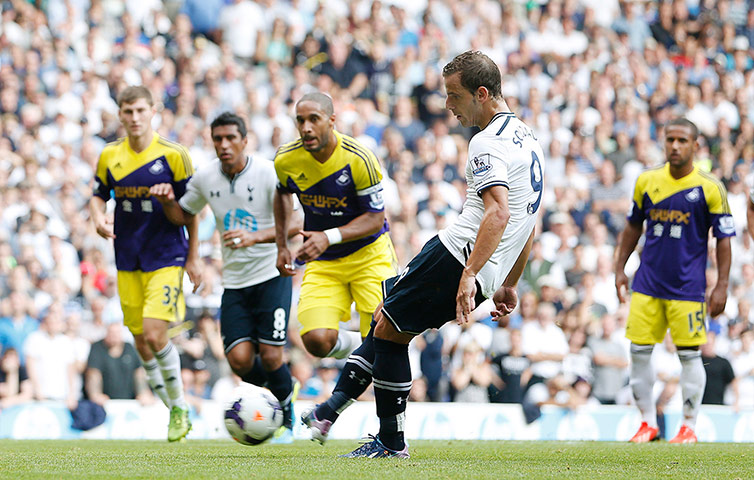 «В отсутствии Гарета Бэйла в составе «Тоттенхэма» есть даже некоторые преимущества –в их пользу, как минимум, назначают пенальти. Судьи скорее предупреждали Бэйла за симуляцию, чем указывали на точку после его падения в штрафной площади, как следствие, в прошлом сезоне «Тоттенхэм» ни разу не бил пенальти. В этом сезоне все изменилось. Два матча премьер-лиги: 2 пенальти и 6 очков. «Тоттенхэм» и Роберто Сольдадо, рекордный трансфер клуба, который эти самые пенальти реализовал, похоже на ходу и не думают останавливаться». Дэвид Хитнер, The Guardian