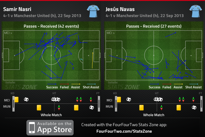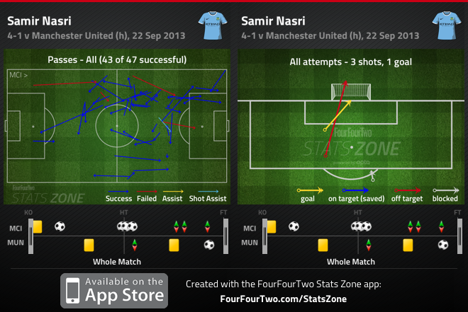 Насри также отлично себя проявил во впечатляющей – пускай и бесполезной – победе «Сити» на «Олд Траффорд» в конце прошлого сезона, и снова благодаря своим смещениям с фланга.
