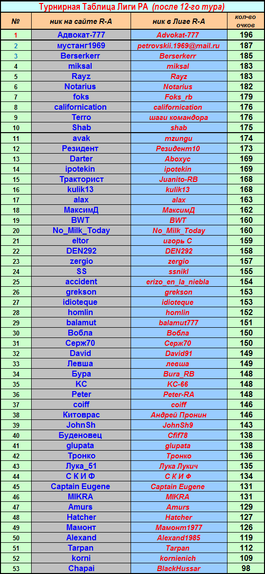 Ну а сейчас вашему вниманию итоги 10-го тура турнира - Личный Кубок