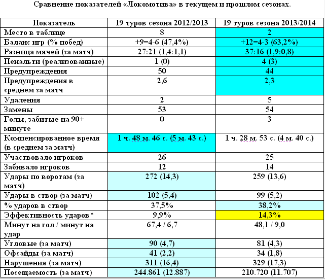 В таблице — общие показатели «Локомотива» после 19 туров в сравнении с аналогичным периодом прошлого сезона.