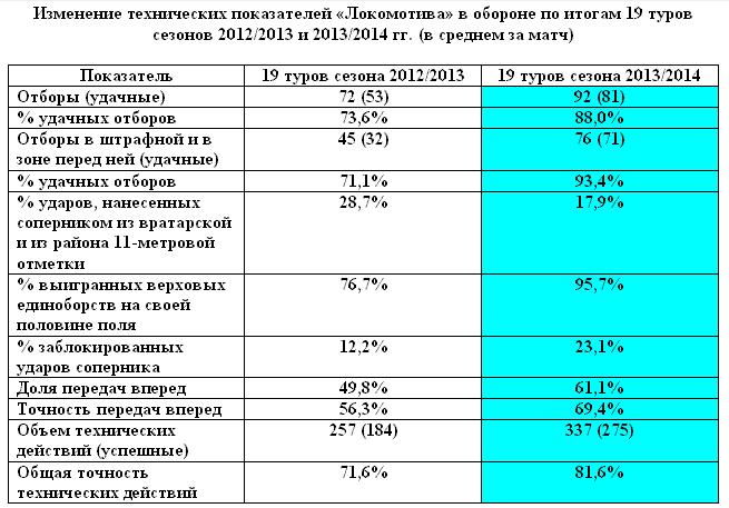 При более детальном рассмотрении становятся понятны причины такого преображения «Локомотива». Намеренно не будем выделять персоналии, обратя внимание только на командные показатели. И начнем с обороны, в которой изменения произошли просто разительные. В таблице ниже приведены некоторые показатели «Локомотива» в защите.