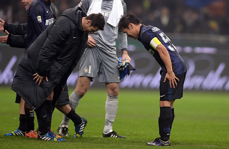 Вальтер Мадзарри же последовательно усиливал полузащиту – линию, где его команда испытывала проблемы в первом тайме. С выходом Матео Ковачича мгновенно улучшилось качество паса и увеличилась интенсивность перемещений в центре поля, а появление Здравко Кузмановича позволило Юто Нагатомо перейти в наступление. Действовавший до этого в левоцентральной зоне Хавьер Дзанетти упорно пытался наладить контакт с японцем, но безуспешно. Кузманович не повторял холостые забегания à la Дзанетти, а освободил коридор для Нагатомо, и последний измотал своего оппонента – Маттиа Де Шильо. К слову, похоже, что в идеологии Мадзарри для Хавьера Дзанетти так и не удастся найти место – на фланге полузащиты ему уже не хватает сил, не лучшим образом обстоят дела и в центре поля. После матча трогательно смотрелся эпизод, когда Дзанетти и Нагатомо поклонились друг другу, словно два самурая.