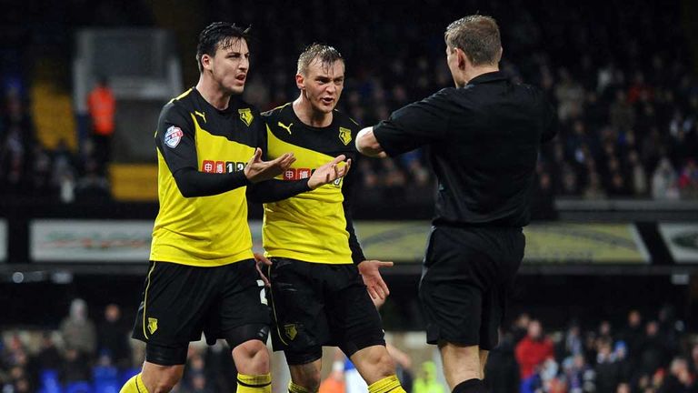 Игроки Уотфорда возмущены назначенным пенальти. Позже FA накажет и оштрафует клуб за неподобающее поведение.